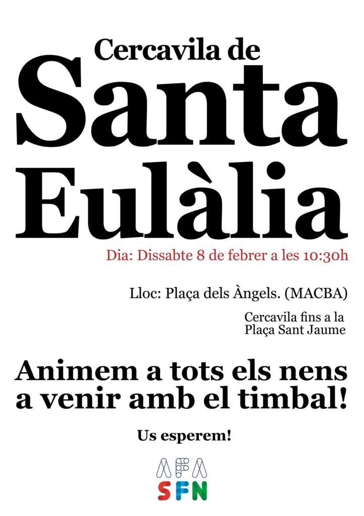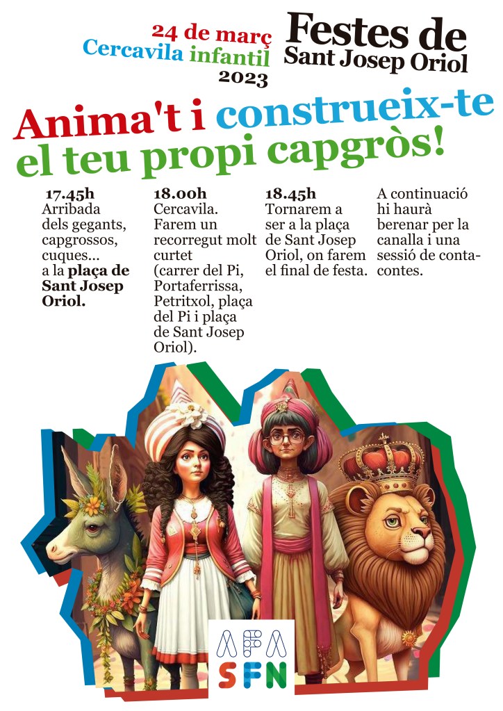 Animem a totes les famílies a participar. Sortirem des de la porta de l’escola a les 16.10 i serà un recorregut curt pel barri. Acabarem a la plaça del Rei, on es farà el pregó d’inici.